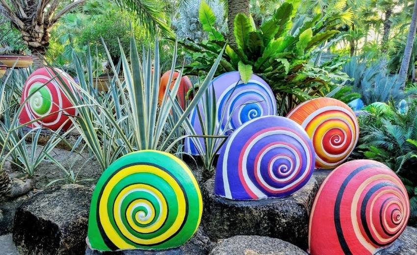 Прежде всего надо обратить внимание на размер и форму. Если в саду длинная трава и высокие цветы, то надо выбирать изделия больших размеров, чтоб их было хорошо видно