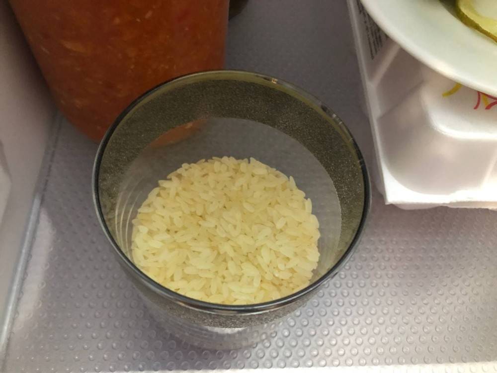Непропаренный рис. Насыпьте зерна в тарелку и поставьте на полку. Вместо тарелки также можно использовать марлю, так самодельный поглотитель будет занимать меньше места