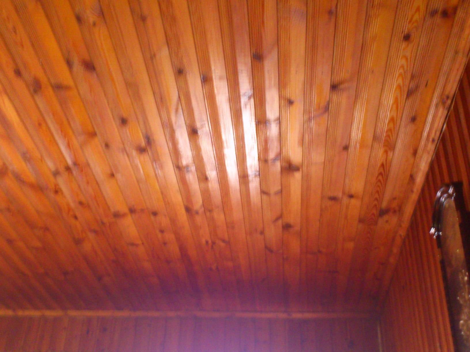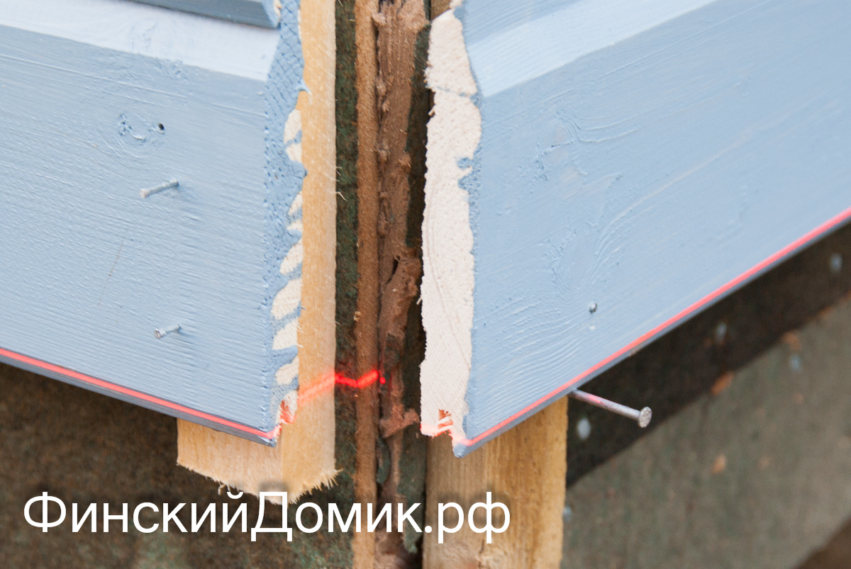 Некоторый интерес может представить горизонтальная стыковка досок. Для того, чтобы сделать стык более незаметным, края имитации бруса запиливались на 45гр следующим образом. Стыки прокрашивались и благодаря этому минимально бросаются в глаза.
