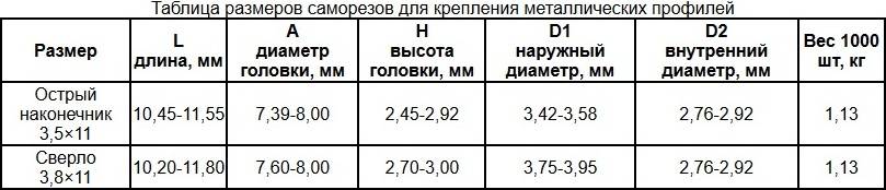 | Острый наконечник3,5×11 | 10,45-11,55 | 7,39-8,00 | 2,45-2,92 | 3,42-3,58 | 2,76-2,92 | 1,13 |