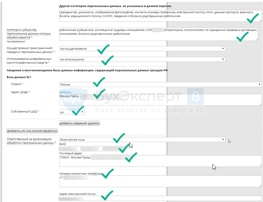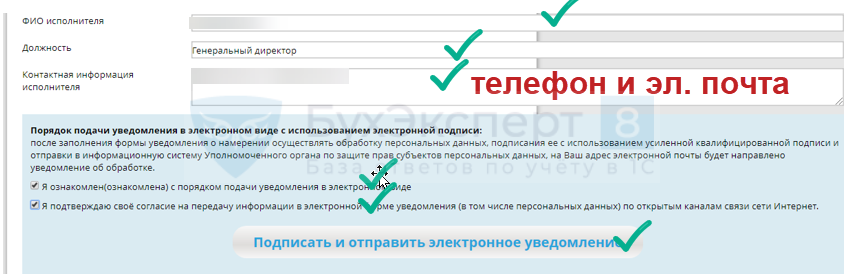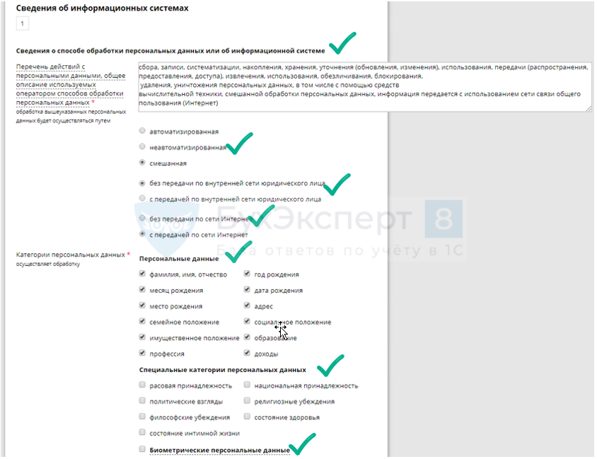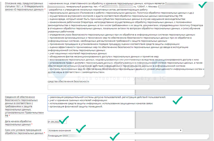 В данном разделе Роскомнадзор рекомендует указывать перечень действий, совершаемых оператором с персональными данными субъектов, а также используемые оператором способы обработки персональных данных и сроки обработки персональных данных.