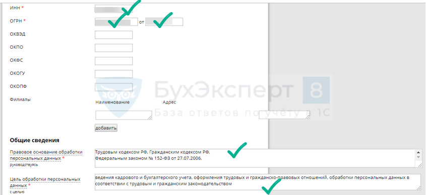 3) сведения об операторе-организации – наименование, адрес, указанный в Едином государственном реестре юридических лиц, идентификационный номер налогоплательщика, основной государственный регистрационный номер (если он известен субъекту персональных данных);