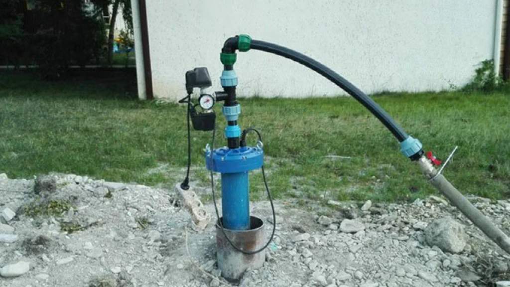 Скважину оснащают насосным оборудованием для перекачки воды. Насос выбирают, исходя из давления грунта, особенностей рельефа, размера скважины. При выборе опираются на уровень производительности насоса, который должен обеспечивать дебит скважины, также объем затрат воды в доме.