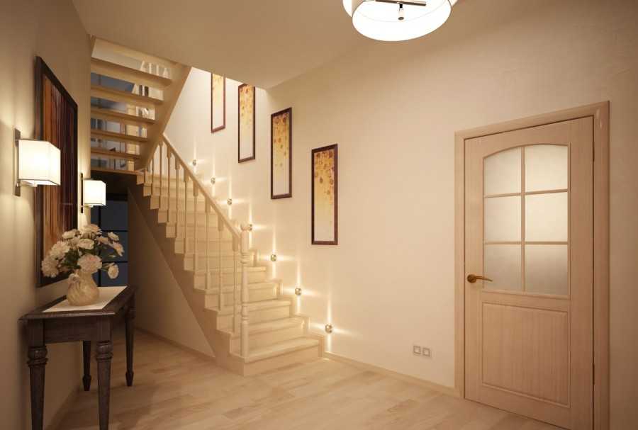 Зрительно увеличить пространство прихожей возможно, если в условиях узкого коридора направить освещение в одну сторону.