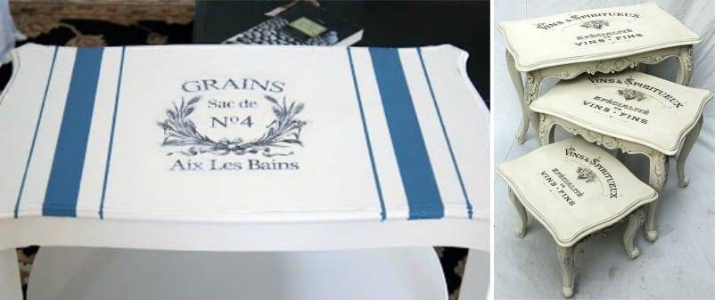 Окрашивание выполняют кистью, валиком или спреем в несколько этапов, каждый раз дожидаясь высыхания предыдущего слоя. Если предстоит декорирование росписью или другими техниками, требующими подготовленной поверхности, операцию выполняют в последнюю очередь. К примеру, оформляют столешницу кухонного стола рисунками или делают декупаж, после чего покрывают лаком.