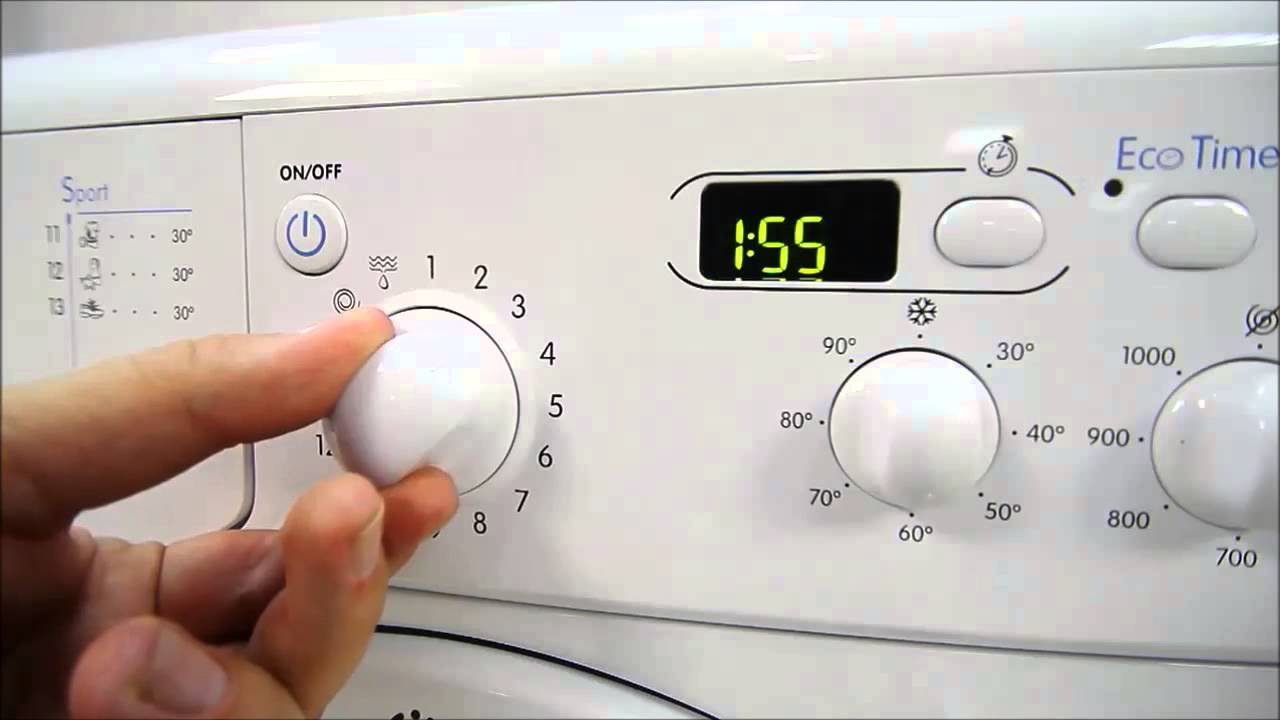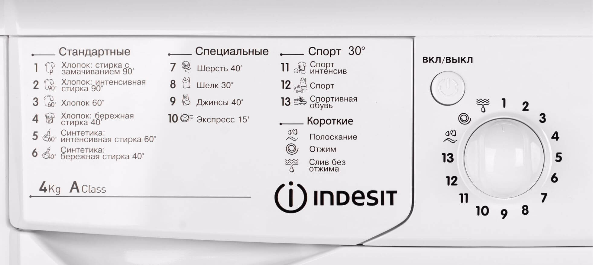- Выбор программы стирки осуществляется только у остановленной стиральной машине Индезит. Нарушение правила может повлечь поломку модуля управления.