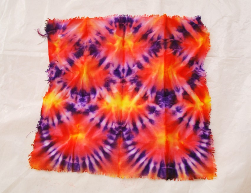 - Узелковый батик – на ткани завязывают узелки и скручивают ее перед окрашиванием. Это позволяет получить необычные разводы и узоры.