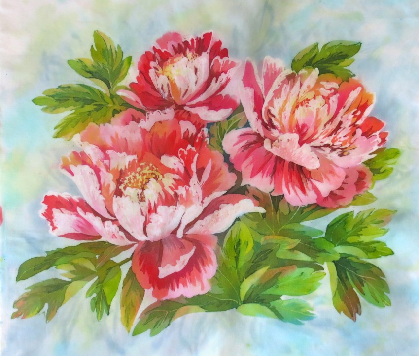 Акварельная. Вид росписи, при которой рисунок на ткани выглядит, как настоящая акварель. Эффект достигается путем разбавления краски специальным разбавителем или обычной водой