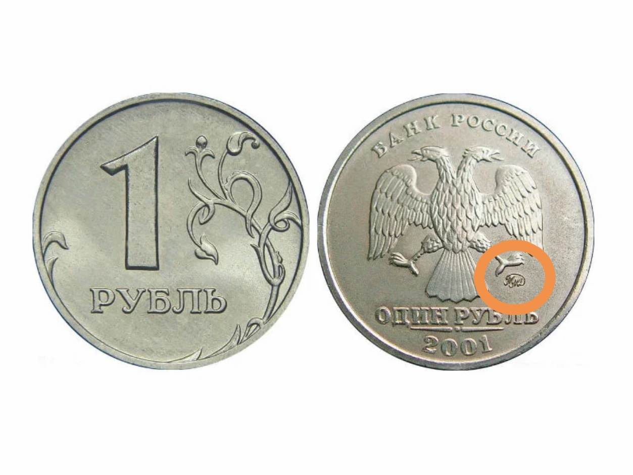 Основной момент при поиске монеты 1 рубль 2001 года — обращать внимание на знак монетного двора. Под правой лапой орла должны быть буквы ММД: