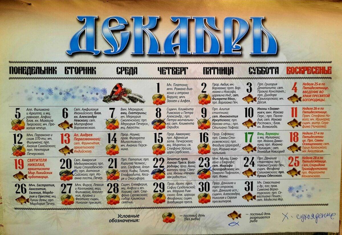 Календарь Рождественского поста на декабрь