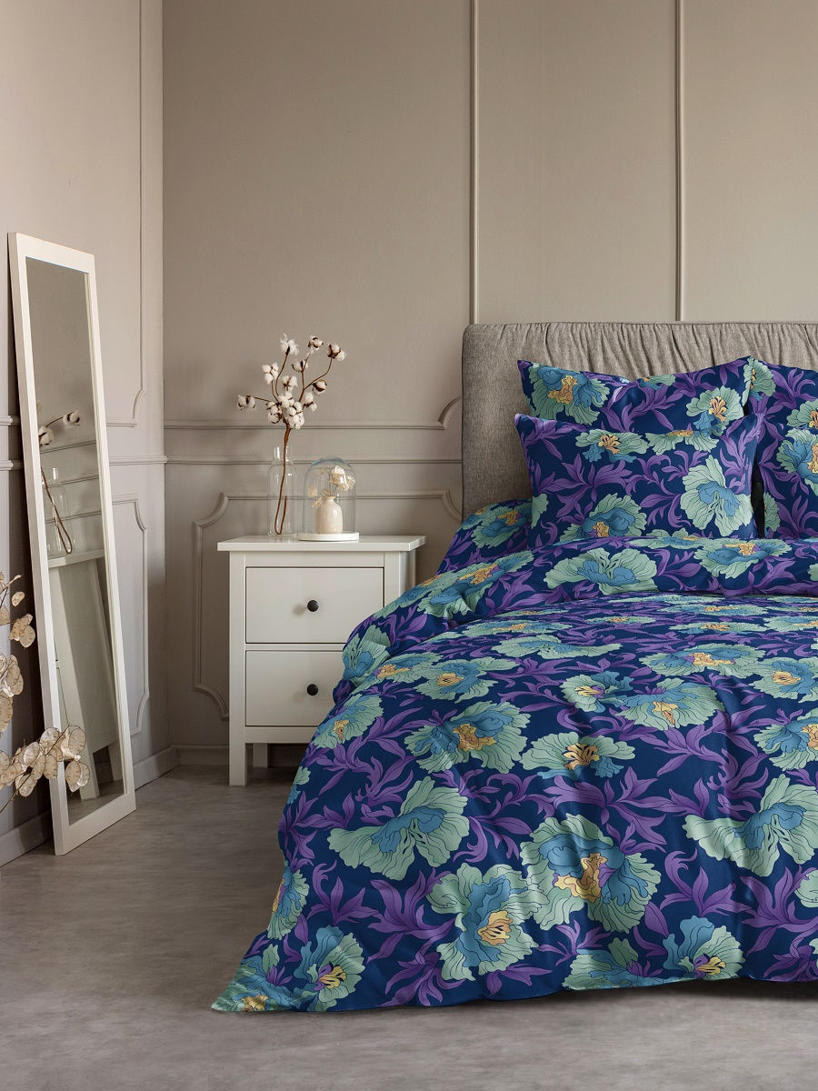 Для спальных комплектов лучше выбирать хлопчатобумажные сатиновые ткани с плотностью выше 130 нитей на см2. Они прочны, долговечны и неприхотливы в обращении. Сатины легко поддаются окраске в различных техниках, причем цвет и рисунки сохраняю первозданную яркость даже после длительной эксплуатации.