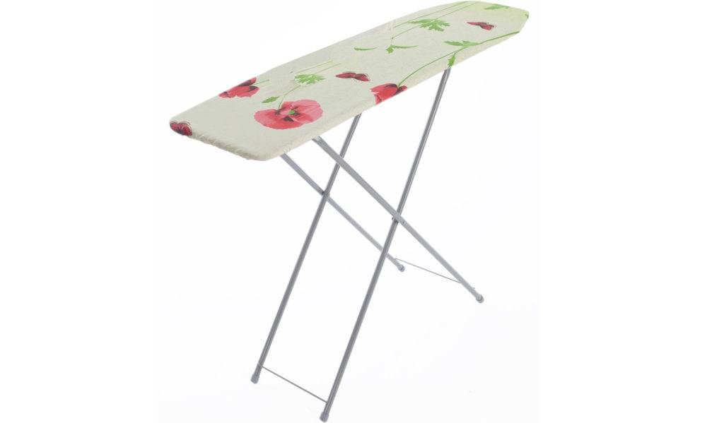 Чехол этой вещи сделан из прочного хлопка. Средний слой изготовлен из упругого и влагопроницаемого ватина. Модель можно регулировать по высоте от 70 до 80 см. Каркас состоит из металла. Размеры гладильной поверхности 112 на 35 см.