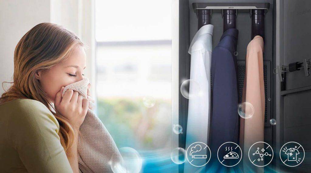 Отлично зарекомендовали себя Lg шкафы для глажки. Корейский производитель предлагает покупателям компактную технику стандартных размеров, которая отлично вписывается в интерьер спальни, зала и прихожей. Технология густого горячего тумана обеспечивает равномерную пропитку тканей любой толщины и состава, устранение инфекции, полную очистку и качественное разглаживание складок.