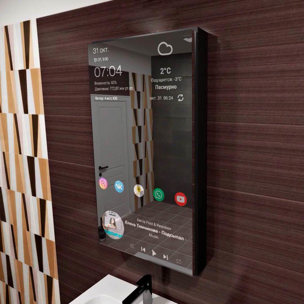 Умное зеркало Smart Mirror, бывает с лед-подсветкой, круглое или прямоугольное, в зависимости от размера и функций стоит от 650 до 4000 долларов.