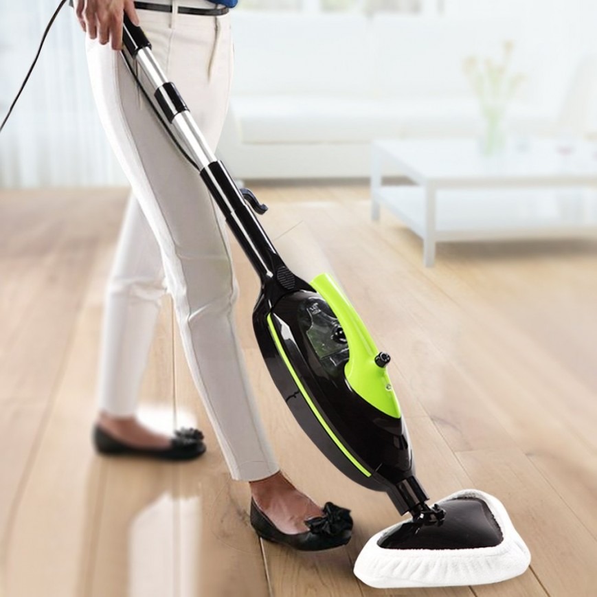 Это паровая швабра, которая не только чистит, но и дезинфицирует любые поверхности. Принцип ее работы заключается в следующем: сильно нагретый пар под давлением очищает поверхность и убивает всех микробов. Обычно в комплекте есть несколько насадок для различных поверхностей. Вам нужно только выбрать необходимую и налить воды в резервуар. После уборки такой шваброй пол обычно блестит от чистоты, а воздух становится значительно свежее.