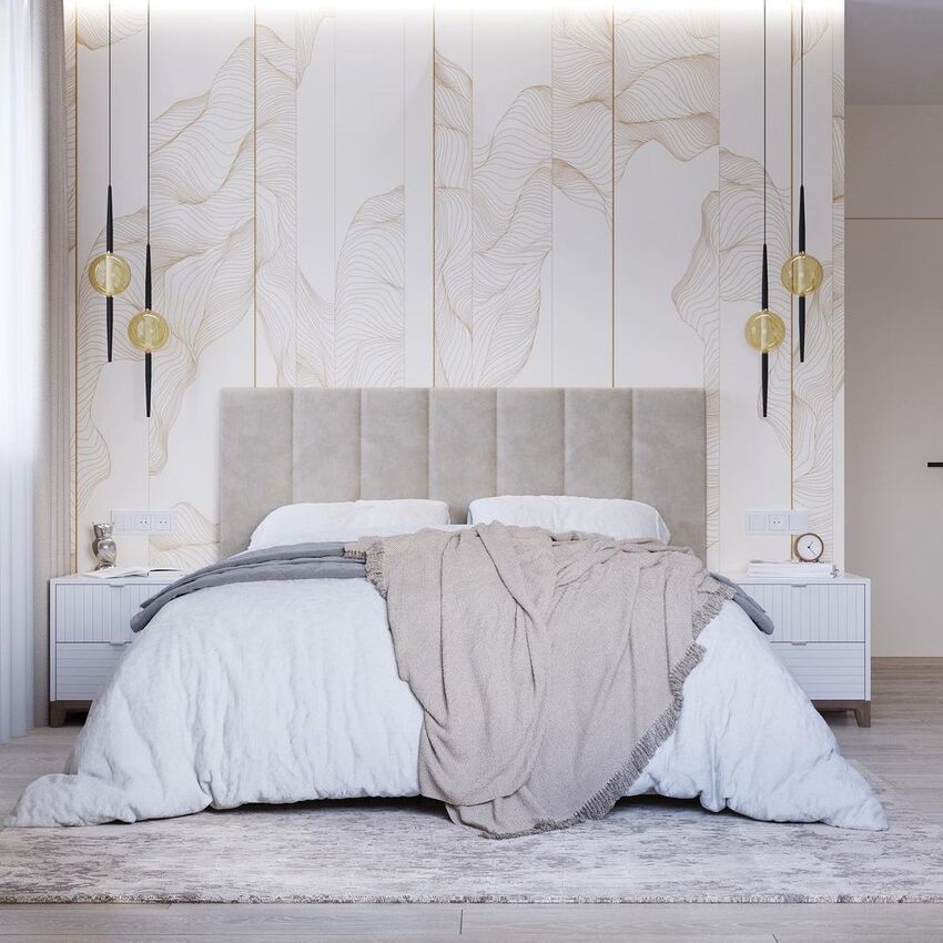 Спальня в кремовом цвете в интерьерном направлении минимализмИсточник abitant.com