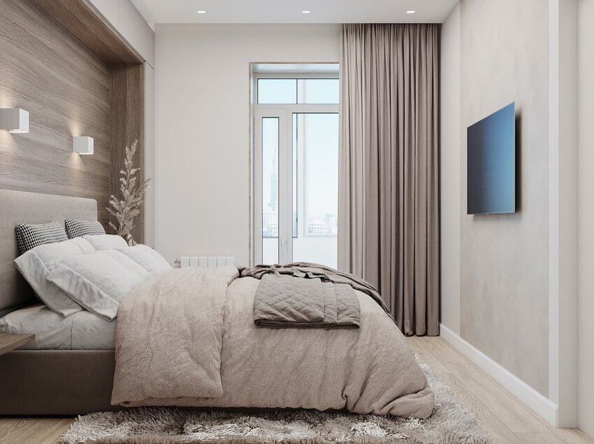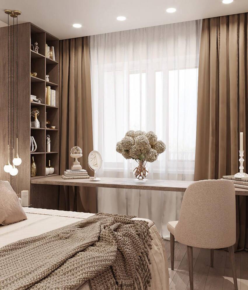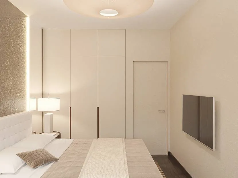 Нюансы интерьера маленькой спальни в бежевом цвете