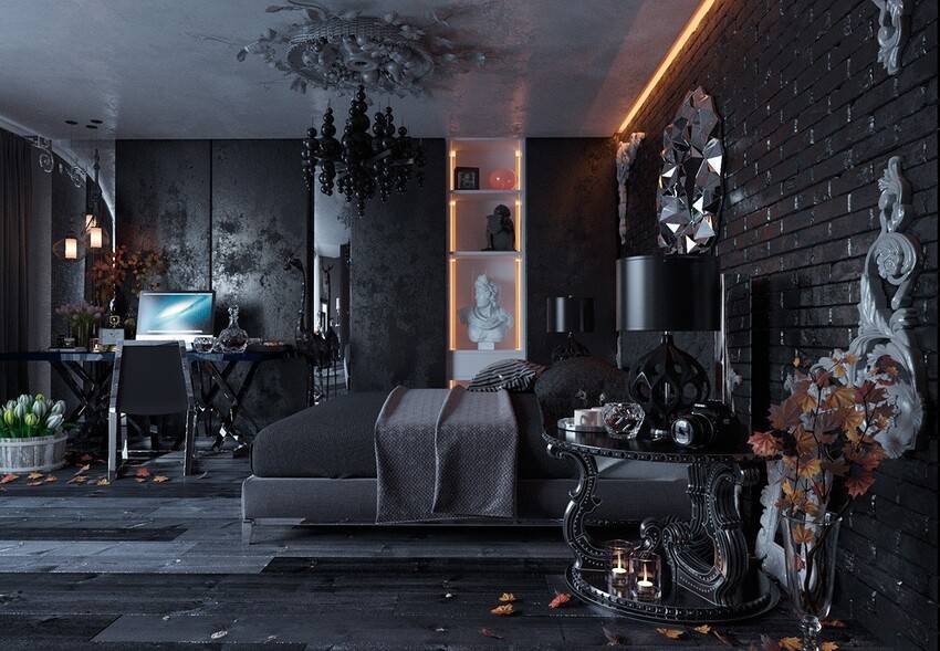 Органичнее всего черный цвет смотрится в готическом и минималистичном интерьере
