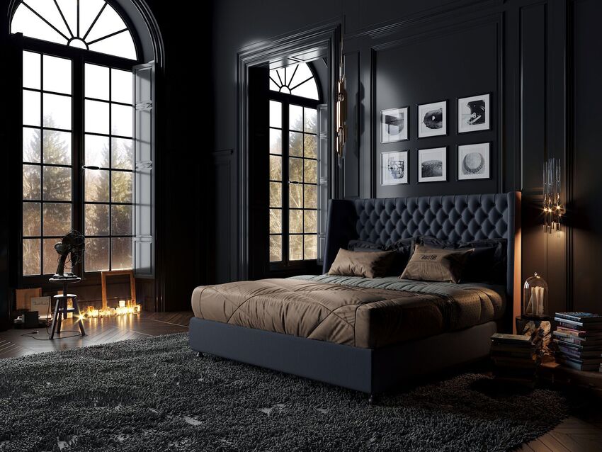 Также не забудьте белоснежные части декора, которые сами по себе яркие и помогут добавить контраста в темную спальню.
