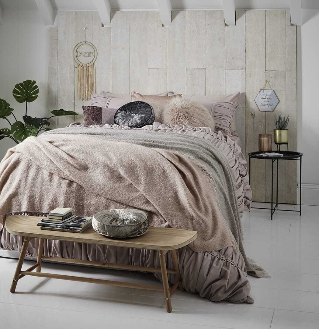 Основной предмет мебели, который должен находиться в центре комнаты — большая удобная кровать, поставленная изголовьем к стене.