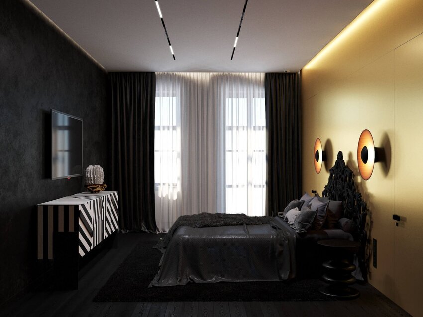 Рассмотрим самые распространенные варианты стилизации спален с использованием черного цвета в интерьере.