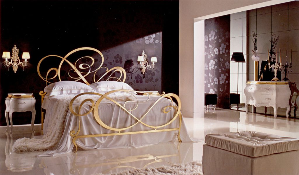 Различные позолоченные канделябры, мягкие овальные формы, черная обивка из шелка, мелкие узоры – это то, что нужно.