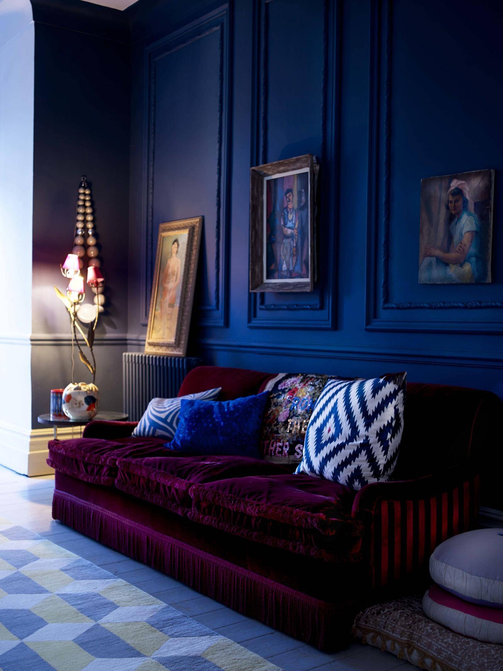 Правильно подобранные синие тона способны оттенить роскошный фиолетовый цвет в интерьере.