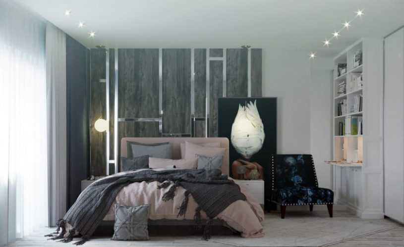 Люстры с белыми однотонными плафонами в центре спальни — прошлый век. Сегодня в тренде декоративные модели, которые прекрасно смотрятся в воздушных скандинавских интерьерах. Светильники футуристического дизайна со множеством светодиодных лампочек — то, что нужно для интерьера уютной спальни, в которой освещение должно быть рассеянным и неярким.
