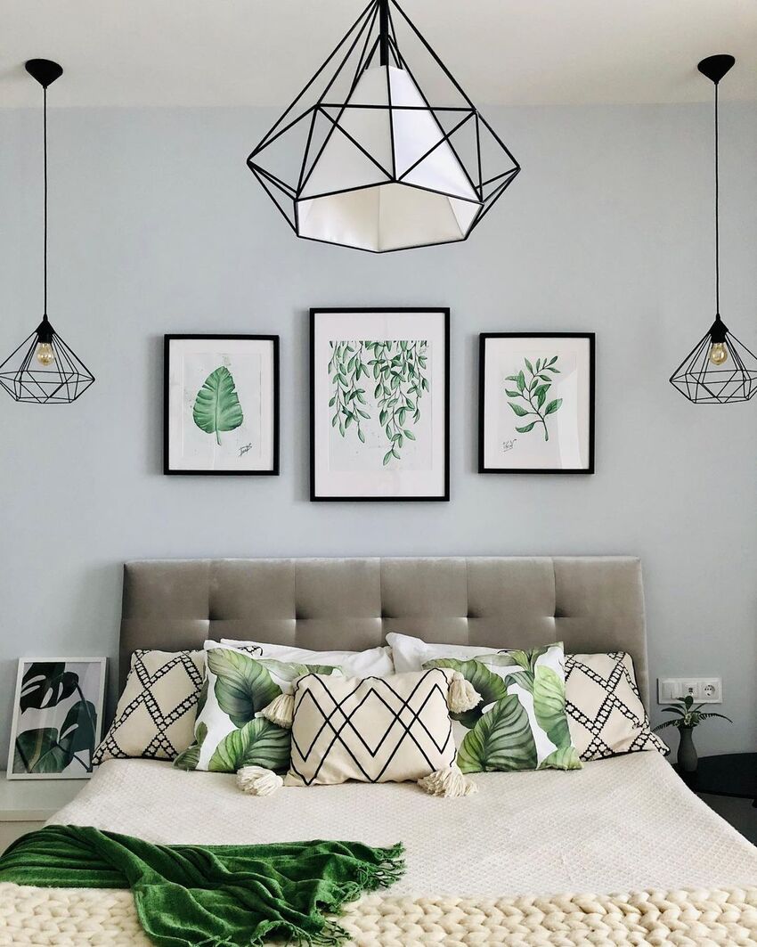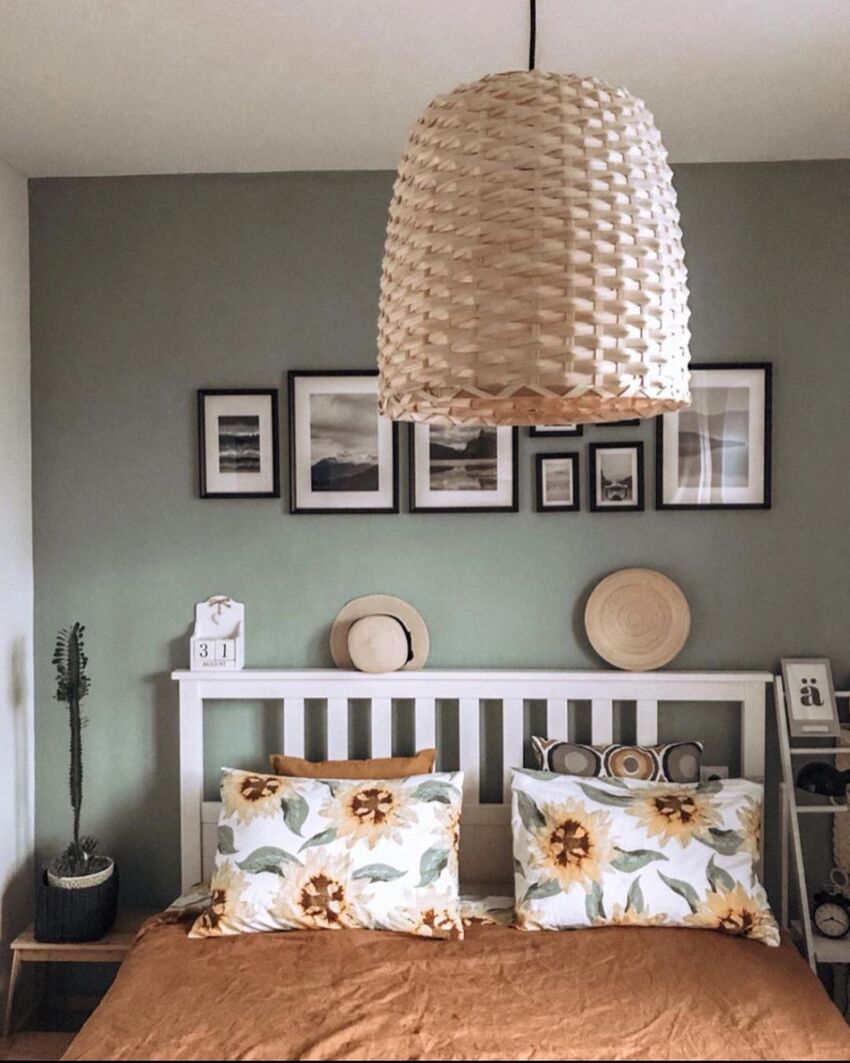 Этот естественный природный цвет отлично впишется в скандинавский дизайн спальни. Можно использовать такие оттенки как оливковый, мятный, фисташковый, сосновый, цвет лайма и другие.