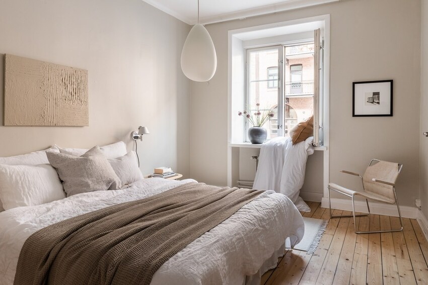 Существуют правила по обустройству скандинавской спальни. Они не сложные и перечислены ниже по пунктам.