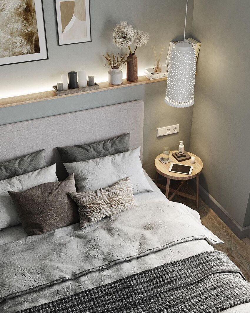 Сейчас в тренде отделка спален в серо-бежевых оттенках, которые получили название грейж (greige).