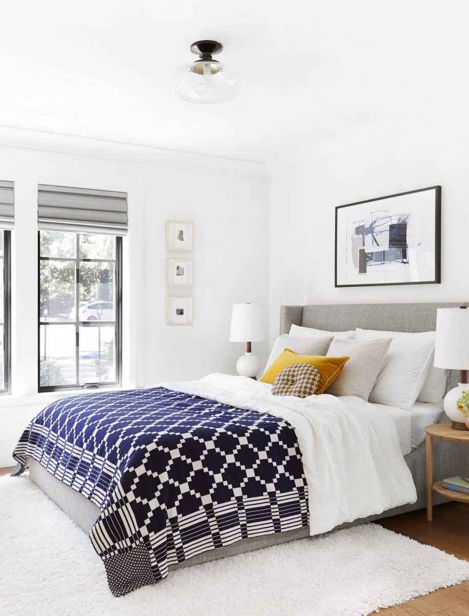 Белый цвет – это классика для оформления спален в стиле скандинавия. Он отлично сочетается с любыми яркими акцентами, орнаментом, природными материалами.