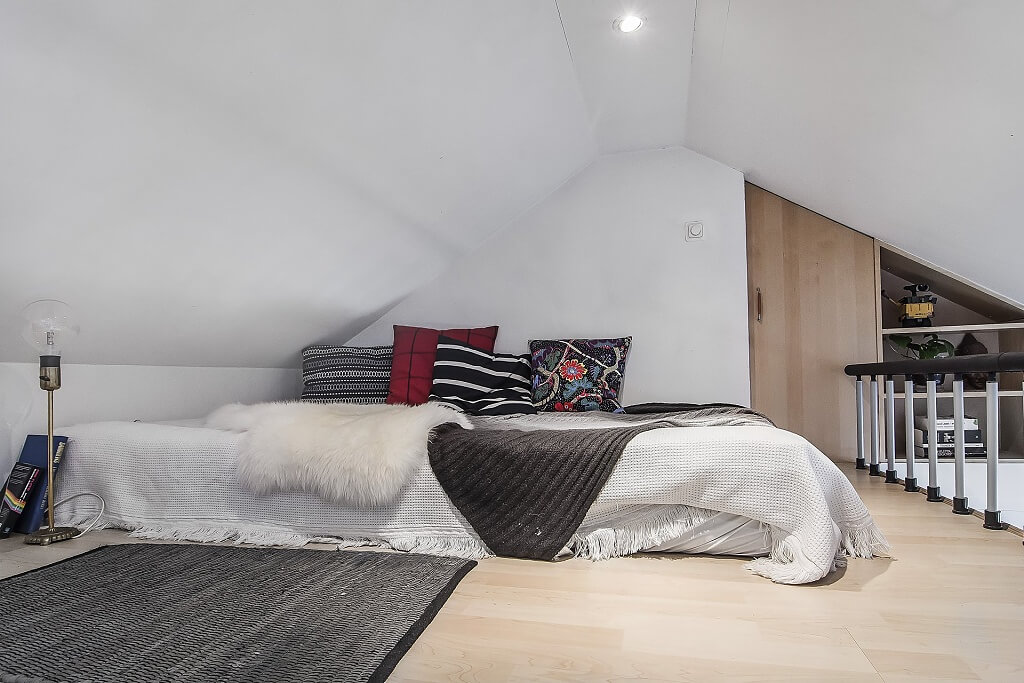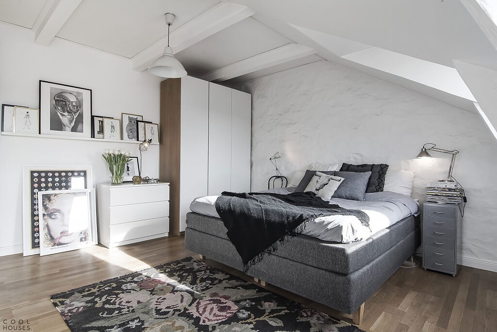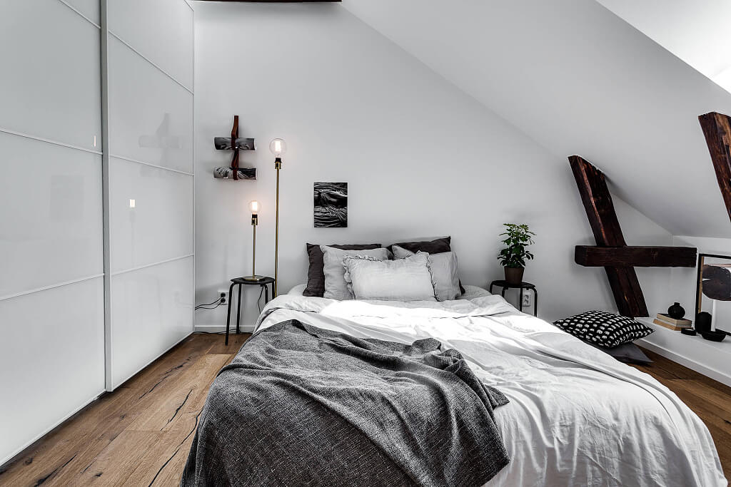 Белый цвет позволяет визуально увеличить пространство маленькой спальни на мансарде
