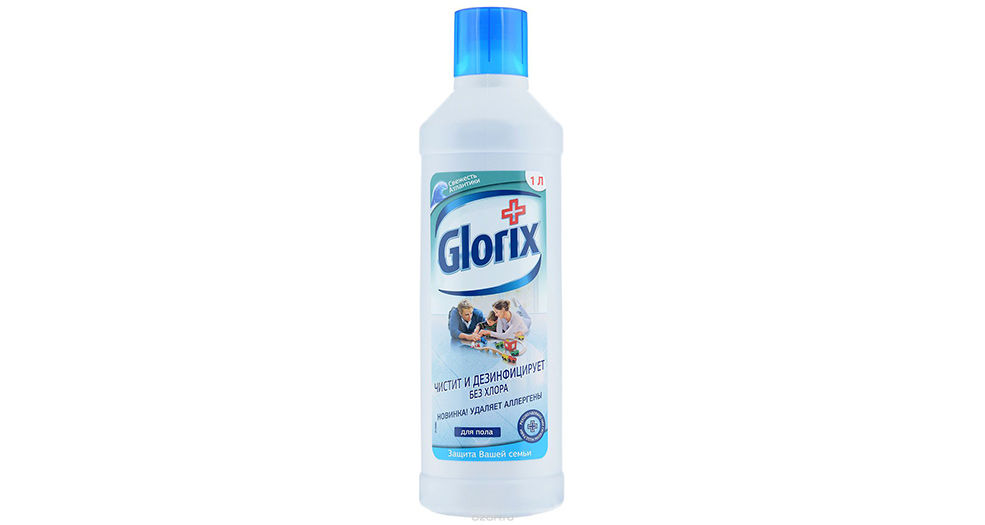 - «Glorix». Характеризуется безопасным составом, стоит недорого, подходит для любого покрытия.