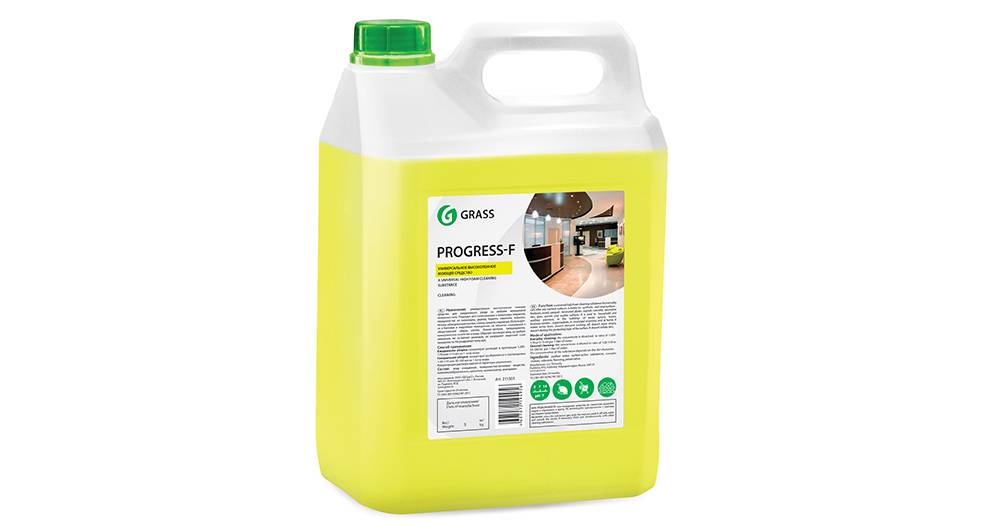 Еще одно отечественное средство, «Прогресс», выпускается в 5-литровой емкости и относится к категории универсальных. С его помощью вы сможете отмыть любую поверхность. Оно абсолютно безопасно для человека и в некоторой степени считается экологичным, так как не содержит большого количества добавок. Из минусов следует отметить, что этот препарат слабо пенится и довольно быстро расходуется.