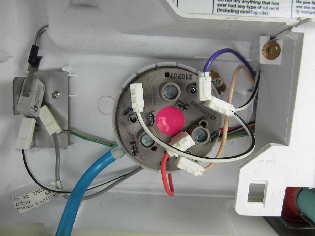 Поломка прессостата обычно фиксируется соответствующей ошибкой на дисплее стиральной машины. Неисправный датчик в большинстве случаев предполагает постоянное отсутствие воды в барабане. Из-за этого он не может передать сигнал о необходимости запуска процедуры слива. Прессостат может сломаться из-за нарушения герметичности мембраны, подгорания или окисления контактов.