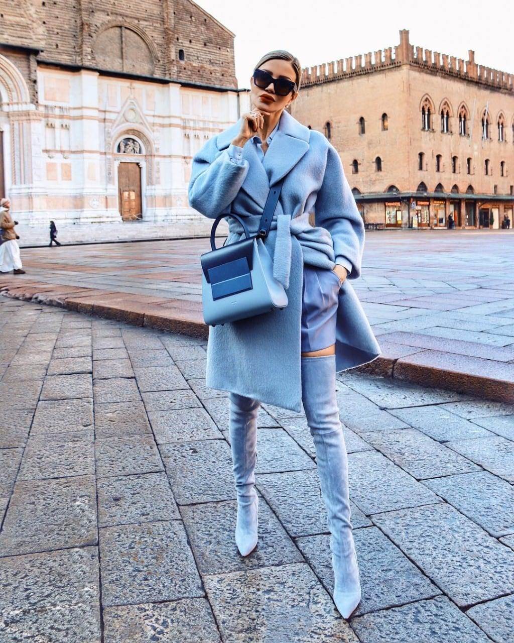 В числе трендов по-прежнему держится монохромный образ. Составить его проще просто, достаточно лишь выдержать лук в одной палитре. Чтобы такое сочетание не получилось скучным, нужно проследить за интересной игрой фактур и наличием стильных аксессуаров. Монохромный аутфит поможет одеваться тепло и стильно и полным женщинам. Одна цветовая вертикаль имеет свойство стройнить и вытягивать силуэт.