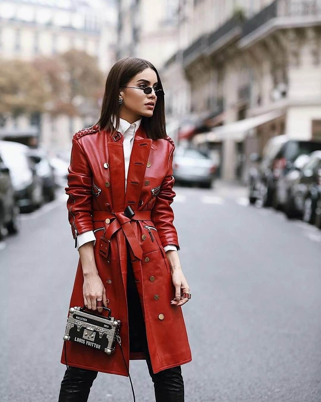 Для прохладной осени отличной идеей будет кожаный плащ. Смело, но так стильно и притягательно!