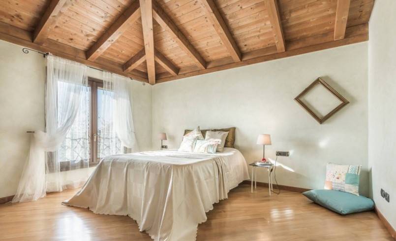 - Если спальня находится в частном доме, который со всех сторон окружен садом, то лучше выбрать прозрачные и легкие шторы. Короткие занавески, или французкие, драпированные шторы здесь будут вполне уместны. Прозрачная занавеска с цветочным принтом создаст стиль прованс и наполнит помещение легкостью и светом.
