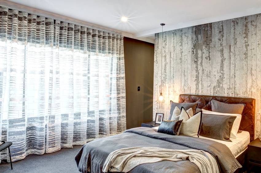 Важно, чтобы шторы гармонировали с обоями, а также с другим текстилем в спальне. Кстати, советуем не только придерживаться цветового единства, но и использовать похожие материалы и фактуры;