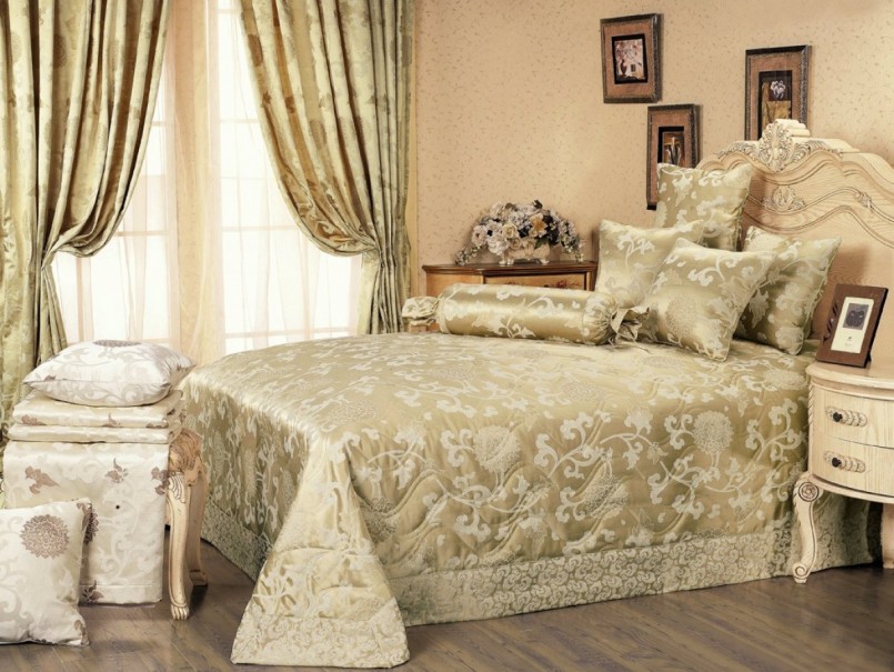 - Оттенки материи подбираются таким образом, чтобы они совпадали с цветом обивки мягкой мебели, находящейся в спальне.