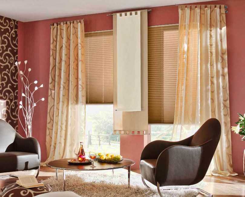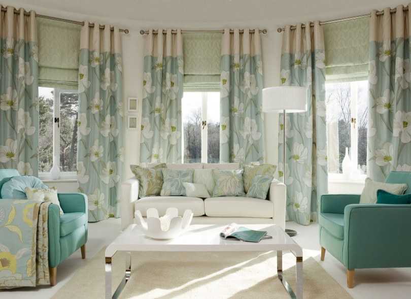 Шторы могут быть разными: одинарными, двойными, двухсторонними, плотными, воздушными, иметь самую различную расцветку. В настоящее время наибольшей популярностью пользуются двойные шторы, состоящие из полотен разных оттенков. Это позволяет лёгким движением руки, просто отодвинув один слой полотна, изменить интерьер помещения. Главным условием является следующий момент: шторы не должны быть двух разных ярких оттенков.