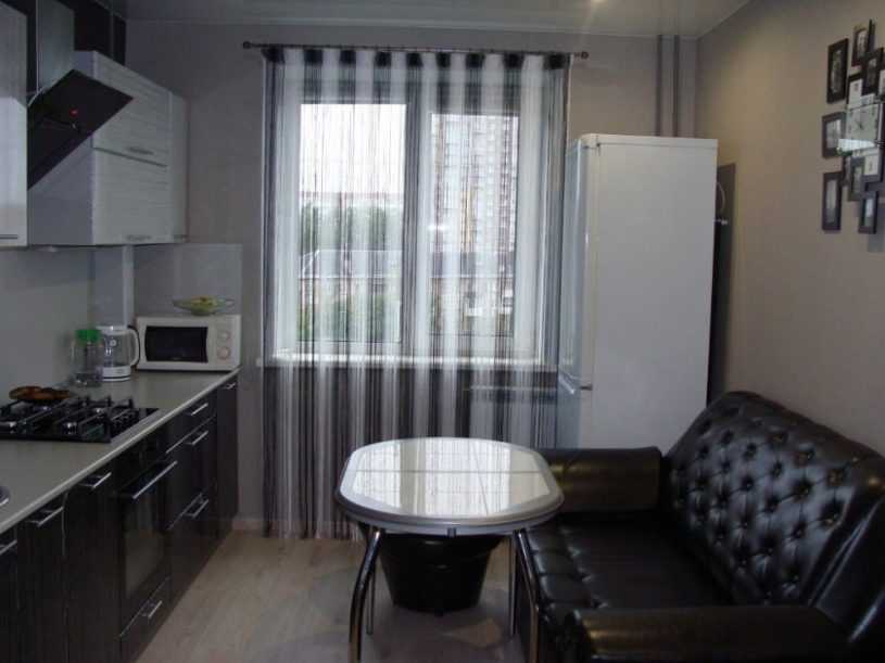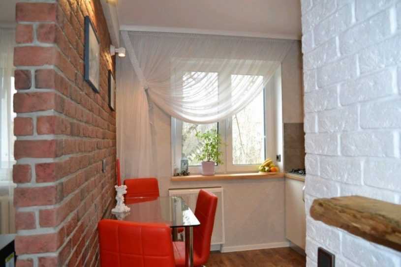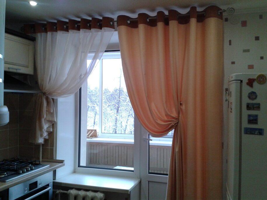 Если кухня высокая и достаточно просторная — длинные шторы в пол удачное решение
