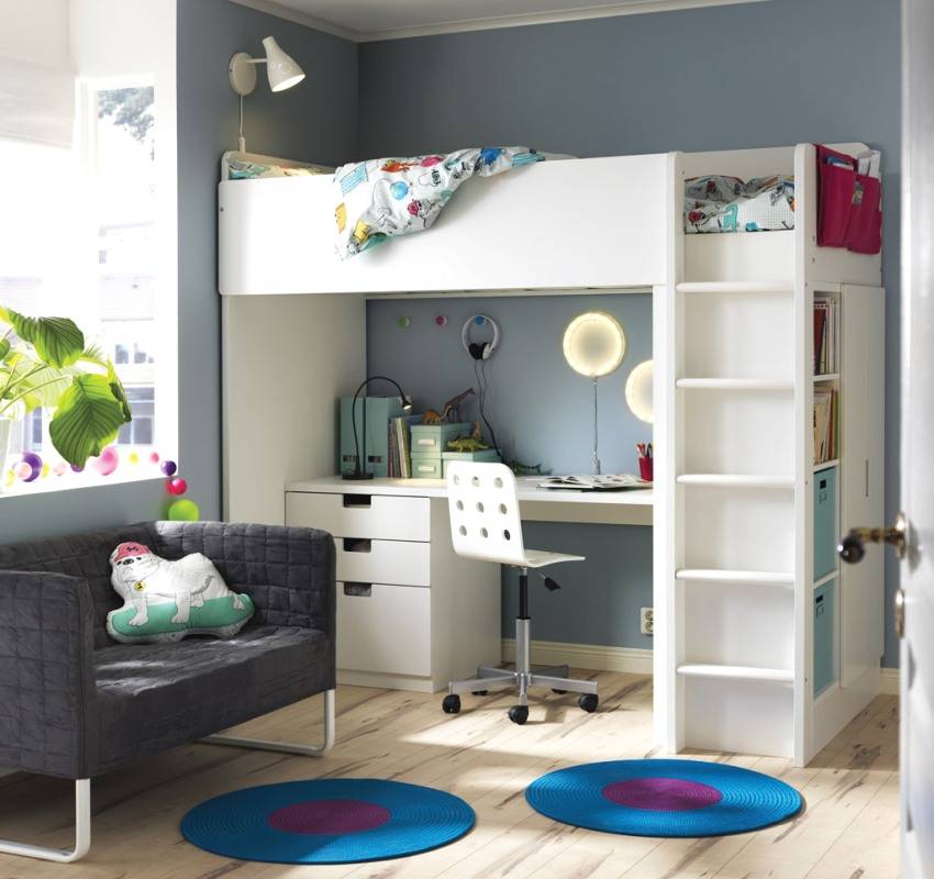 - Под кроватью-чердаком можно разместить как минимум одно место для учебы, как показано на фото ниже.