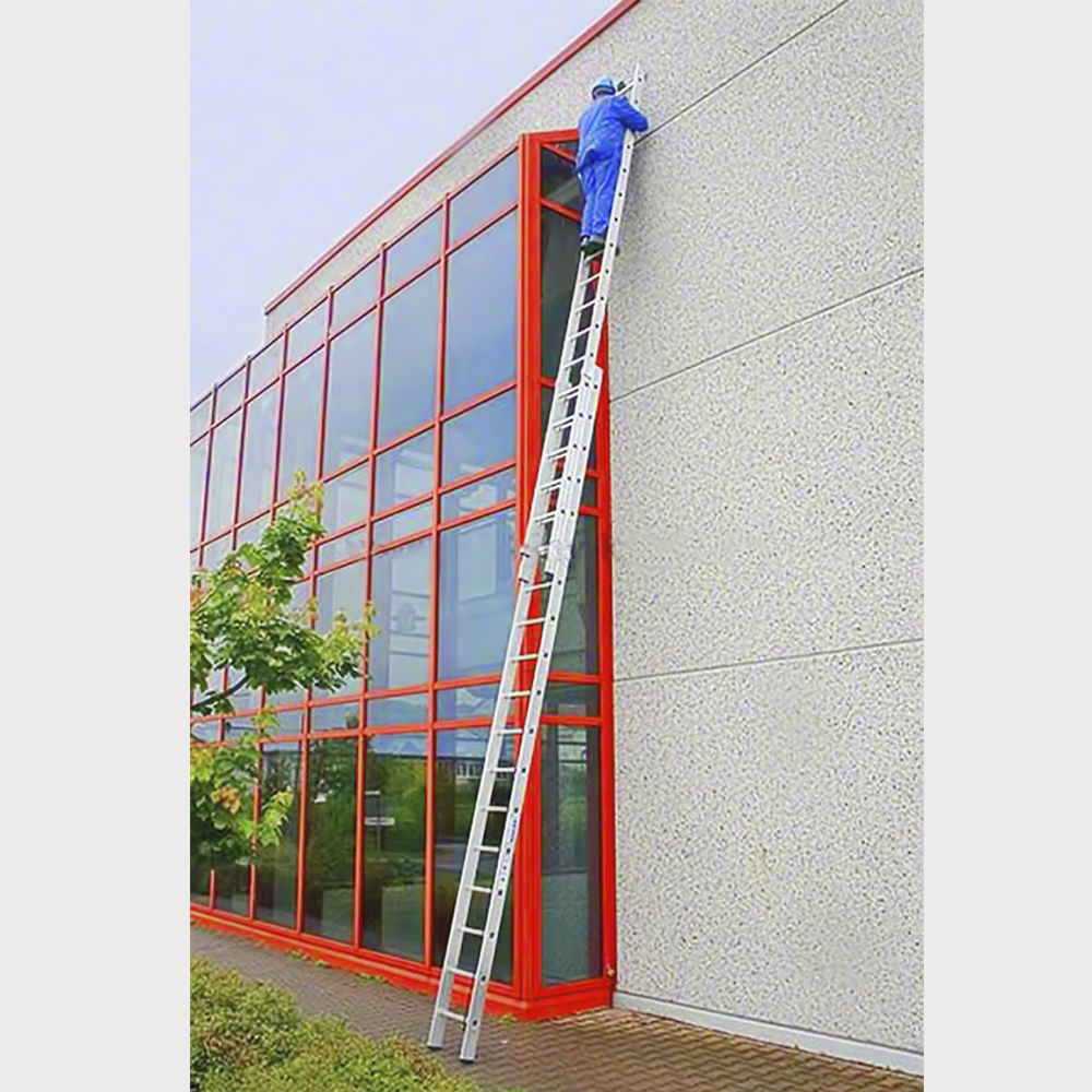 Любая трехколенная лестница, представленная на нашем сайте, изготовлена из прочного и легкого алюминия. Благодаря направляющим стальным профилям обеспечено комфортное выдвижение лестницы. Возможность скольжения полностью исключена за счет профилированных перекладин, а с помощью опорных заглушек 3 секционная алюминиевая лестница прочно закрепляется на опорной поверхности.