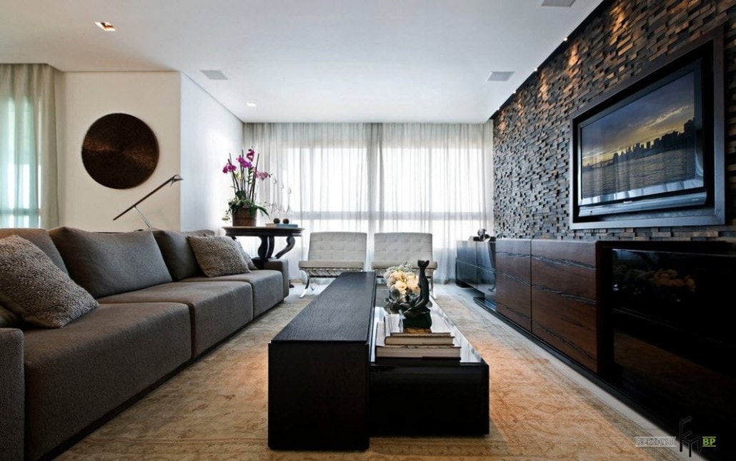 Чтобы подобрать тип кладки и вид декоративного камня для отделки зоны вокруг телевизора, необходимо учитывать стиль интерьера.