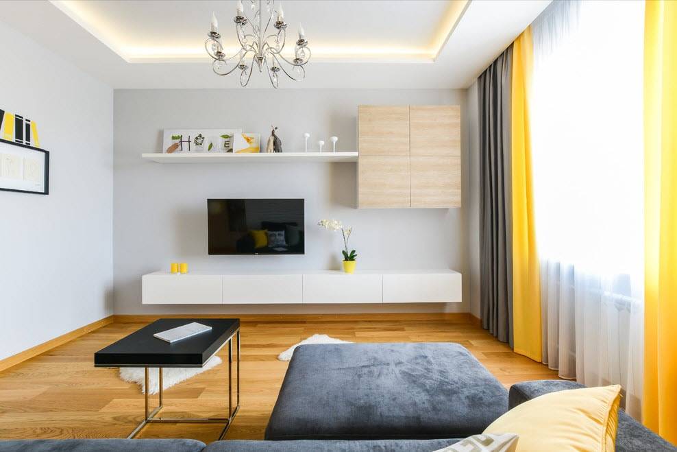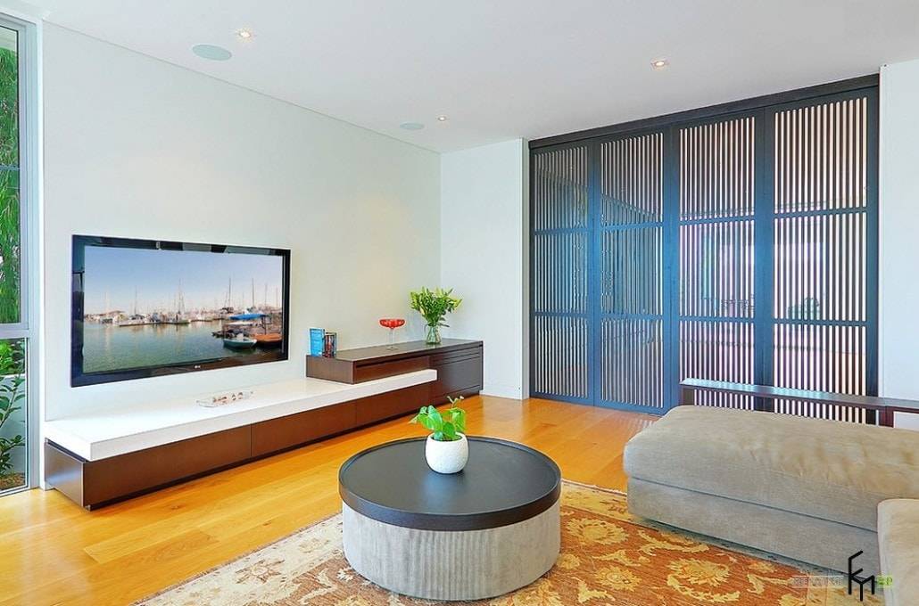 Перед установкой телевизора необходимо обратить внимание на планировку гостиной. Чаще всего большие плоские телевизоры крепятся к стене, а небольшие квадратные экраны размещаются на специальной подставке или комбинируются с мебелью