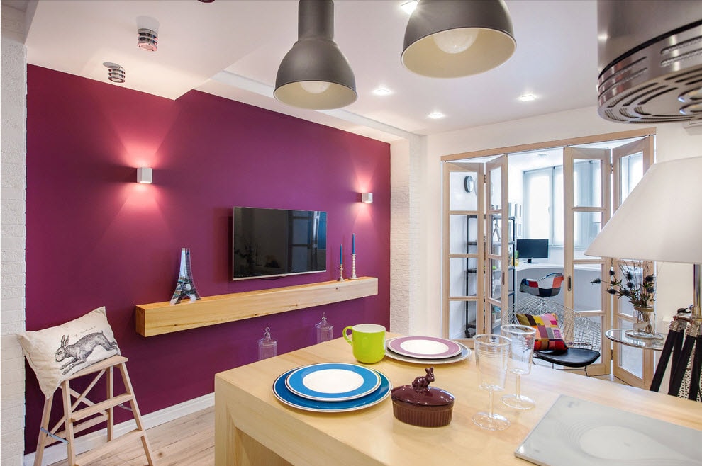 Оформление стены. Экран на однотонной основе хорош в минималистичных стилях. Если комната не выполнена в таких решениях, нужно продумывать варианты декора.