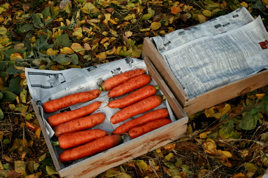 После этого его вынимают и тщательно сушат. Глиняная оболочка не должна нарушаться, когда морковь будет размещаться в деревянных ящиках.