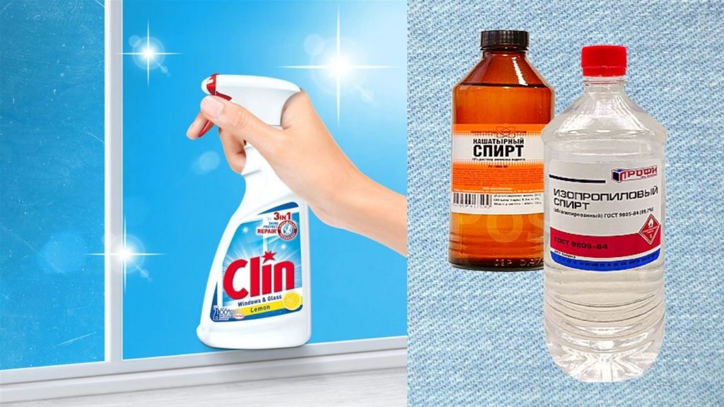 - Жидкости с изопропиловым или бензиловым спиртом очищают окна, не оставляя следов, растворяют даже старые жирные кляксы. Не нуждаются в смывании.